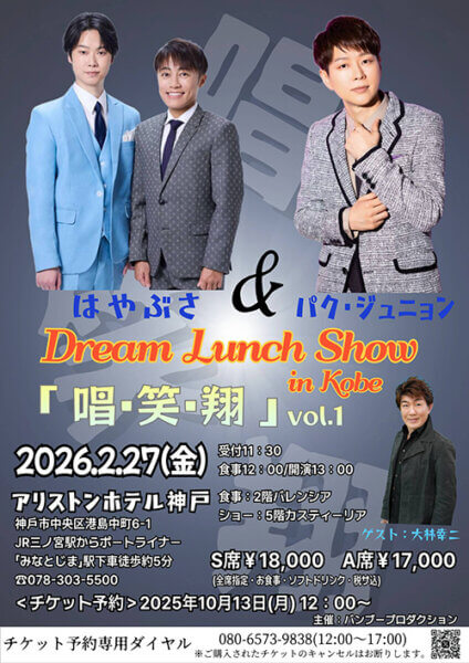 2/27(金)はやぶさ&パク・ジュニョンDream Lunch Show in Kobe「唱・笑・翔」vol.1 開催決定!