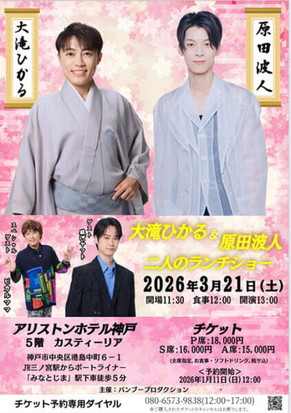 3/21(土)「大滝ひかる&原田波人 二人のランチショー」<兵庫県/アリストンホテル神戸>※ゲスト出演:駿河ヤマト
